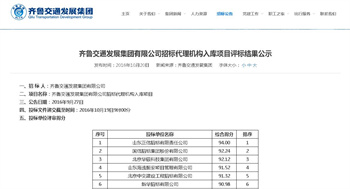 2016年10月19日,齊魯交通發展集團有限公司招標代理機構入庫項目進行公開開標,我公司以綜合得分第一的成績成功入圍。