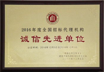 喜訊:11月6日,正信招標(biāo)公司榮獲中國土木工程學(xué)會(huì)、建筑市場與招標(biāo)投標(biāo)研究分會(huì)頒發(fā)的“2016年度全國招標(biāo)代理機(jī)構(gòu)誠信先進(jìn)單位”稱號(hào)。今后,我們經(jīng)繼續(xù)秉承“公開公平公正、科學(xué)技術(shù)嚴(yán)肅”的服務(wù)態(tài)度,為招標(biāo)事業(yè)貢獻(xiàn)力量。