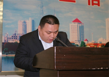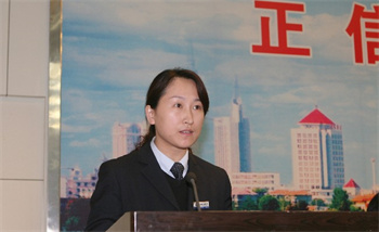 (圖示:一等功勛員工(招標公司常務副總經理)魏紅發言)