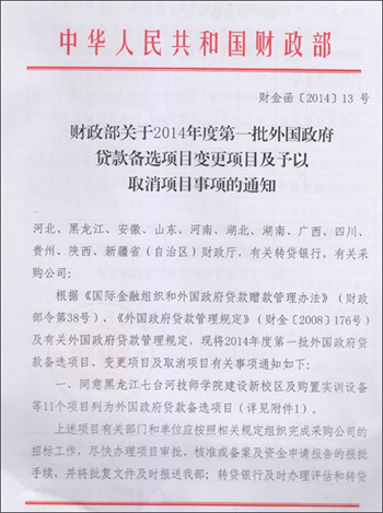 財政部2014年度第一批外國政府貸款備選項目變更項目等事項的通知
